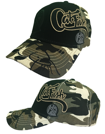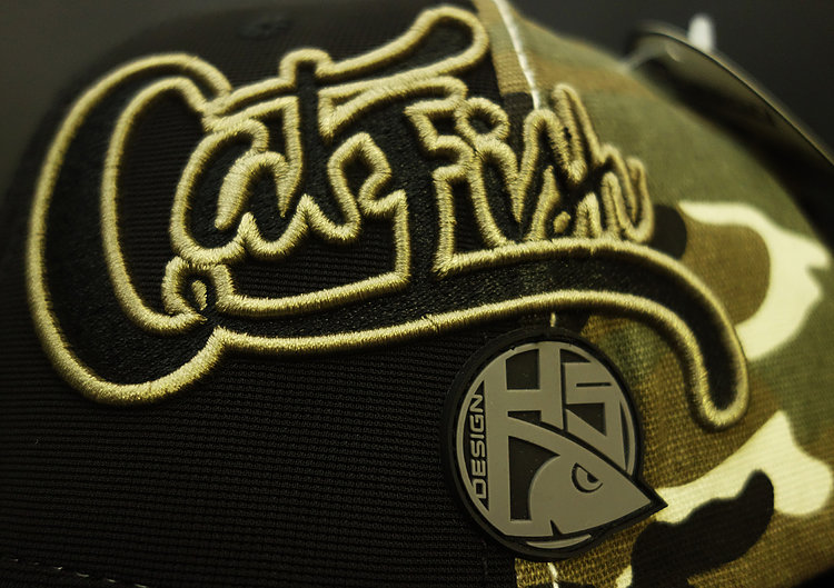 Бейсболка CATFISH камуфляжного цвета с лицевой панелью черного цвета, 80% хлопок, 20% полиэстер, унисекс, один размер подходит всем.